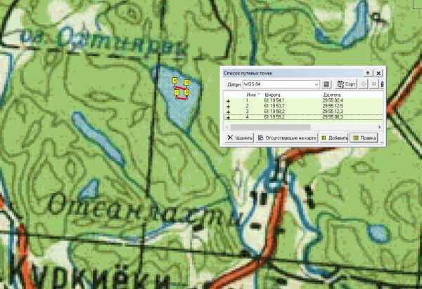 Точка 2 61° 19’ 53,6664’’* 29° 55’ 12,5364’’*